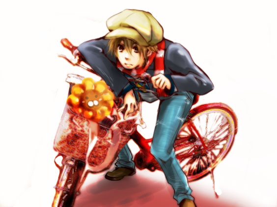 自転車に乗ってる絵ととりあえずてつさんを描きたい!!と思って描いた絵です。